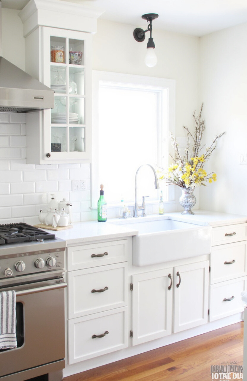 Glass-front cabinets showcase your dishware and add elegance. They open up the space and make it feel brighter.