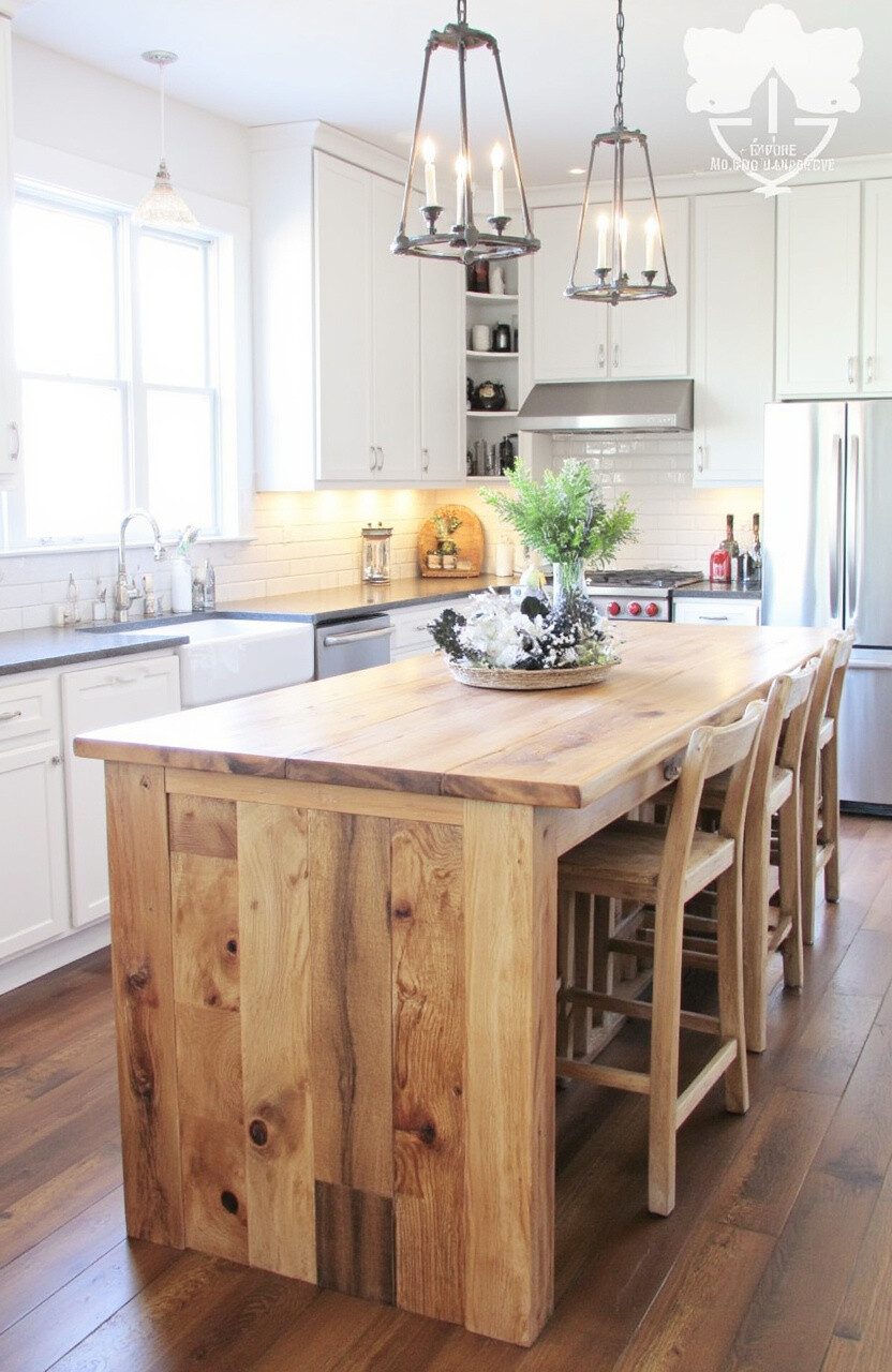 Choose a simple design with a natural wood finish. This piece will be the heart of your kitchen.