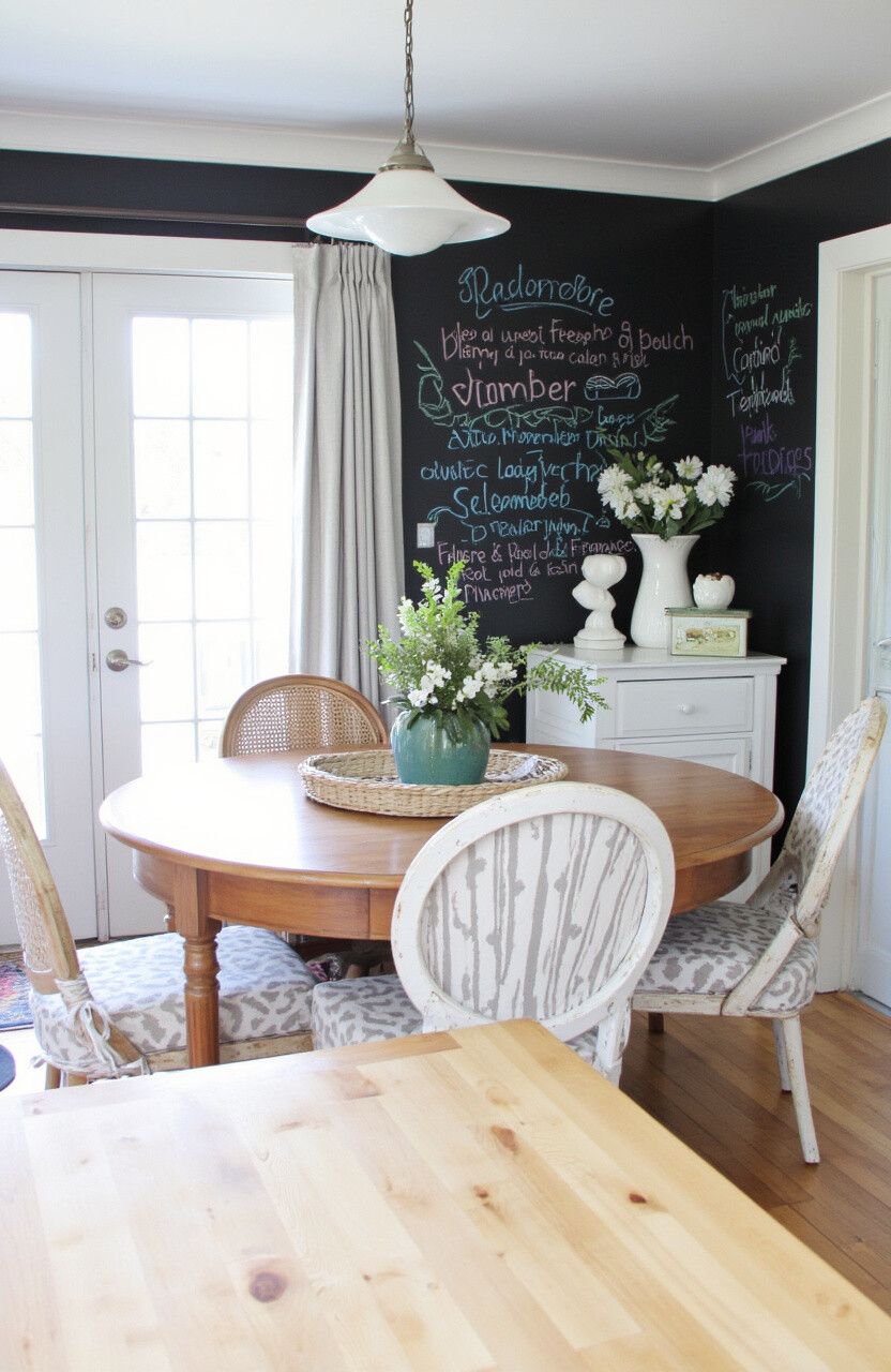 Painting a wall with chalkboard paint is fun and functional. It’s perfect for notes, recipes, or doodles.