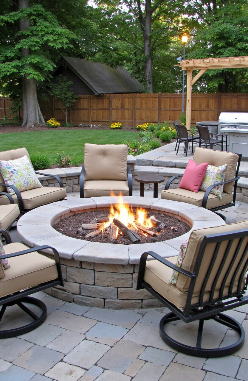 Swivel chairs around a firepit offer a fun and dynamic seating option. You can turn to face the fire or your friends without moving your chair. It’s a playful addition that encourages interaction.