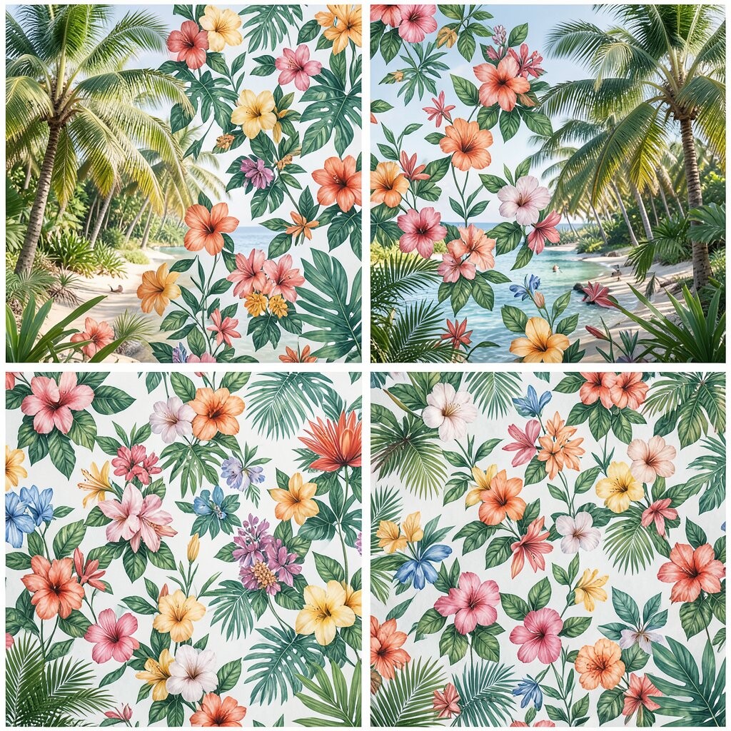 Imagine being surrounded by lush palm leaves and vibrant hibiscus flowers. Tropical Paradise patterns bring a sense of vacation right into your home. Their bright colors and large designs make any room feel like a serene escape.