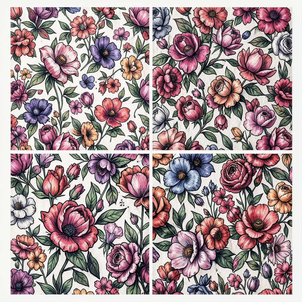 Whimsical Doodles feature playful, hand-drawn flowers. They bring a sense of fun and creativity. Ideal for children’s rooms or playful spaces.
