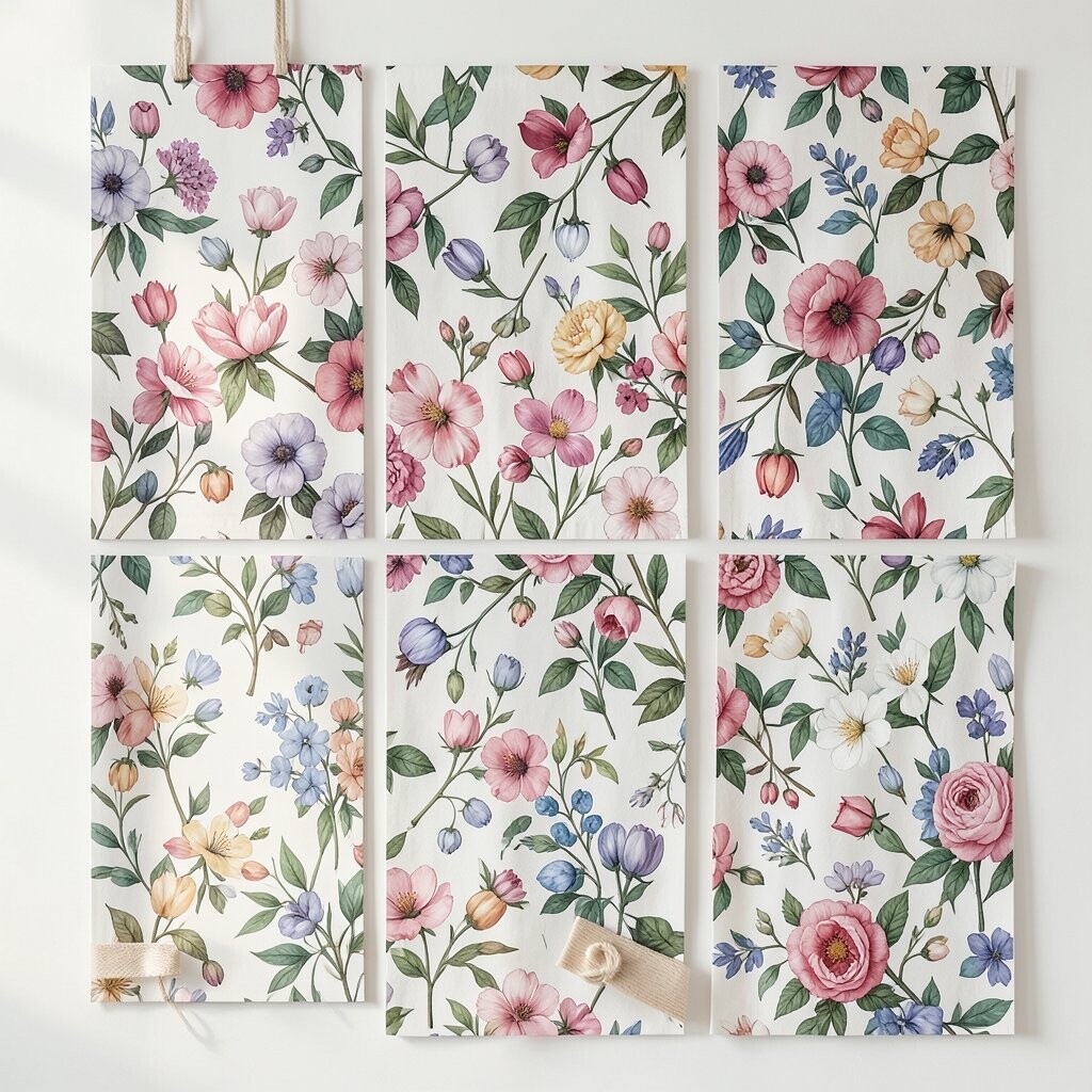 Rustic Wildflowers bring the charm of the countryside indoors. Featuring small, scattered flowers in earthy tones, they’re perfect for a cozy feel.