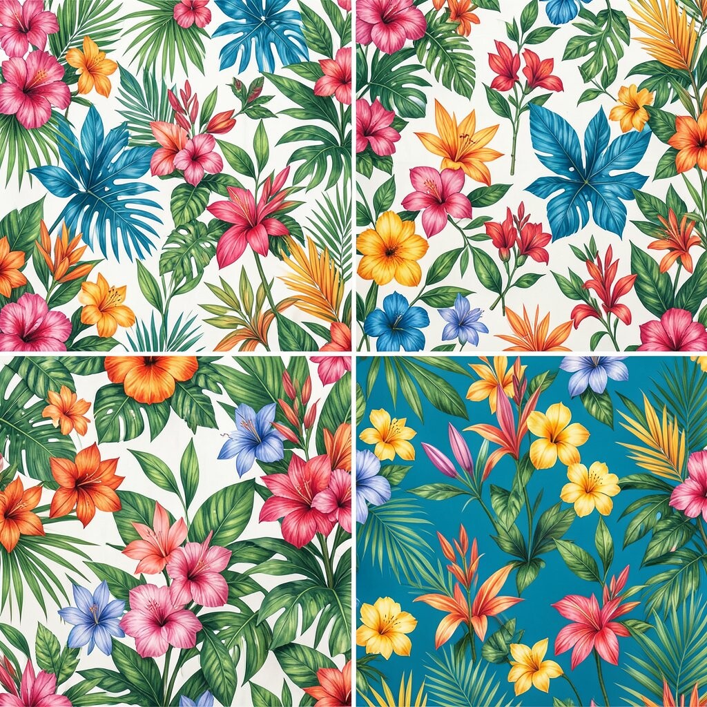 These patterns are all about vibrant colors and tropical vibes. Featuring bright flowers and lush leaves, they bring energy and excitement.