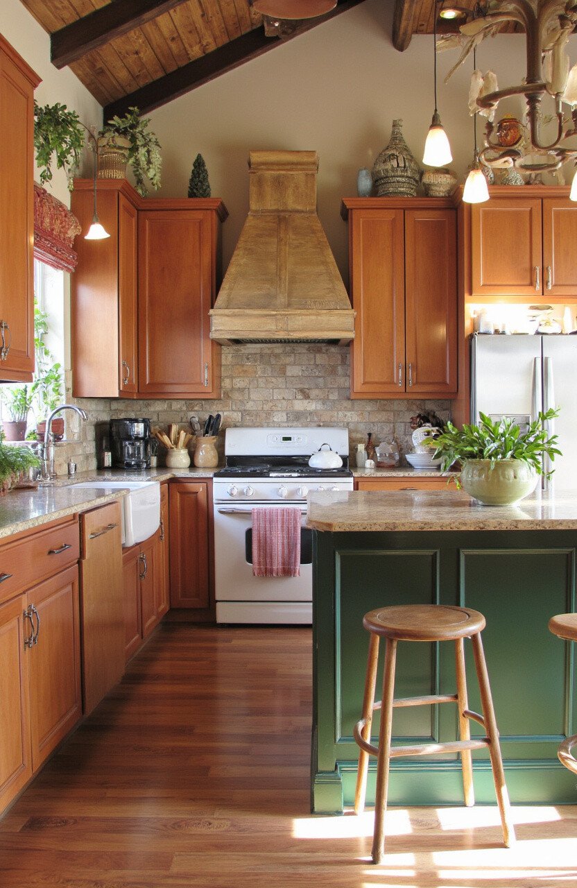 A warm color palette can make a rustic kitchen feel inviting and comfortable. Think earthy tones like terracotta, deep greens, and warm neutrals.