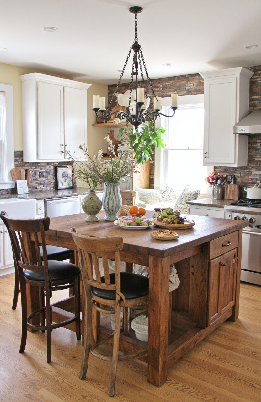 A rustic kitchen island provides extra counter space and storage. Made from materials like reclaimed wood or stone, it becomes the centerpiece of your kitchen.