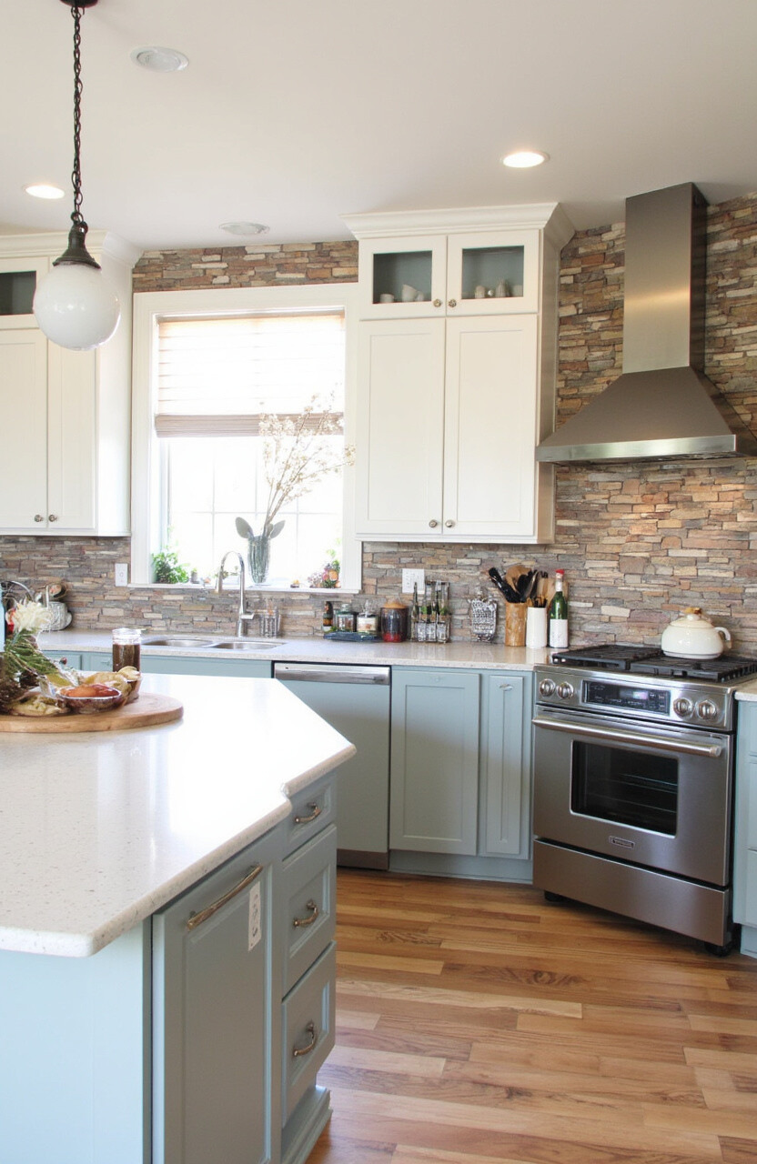 Add texture to your kitchen with a rustic backsplash. Materials like brick, stone, or even wood can create a stunning focal point behind your stove or sink.