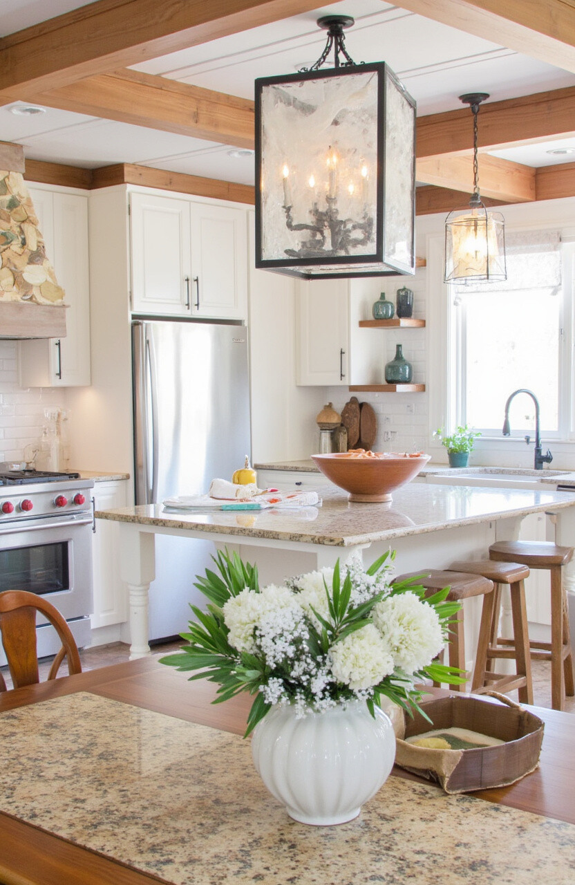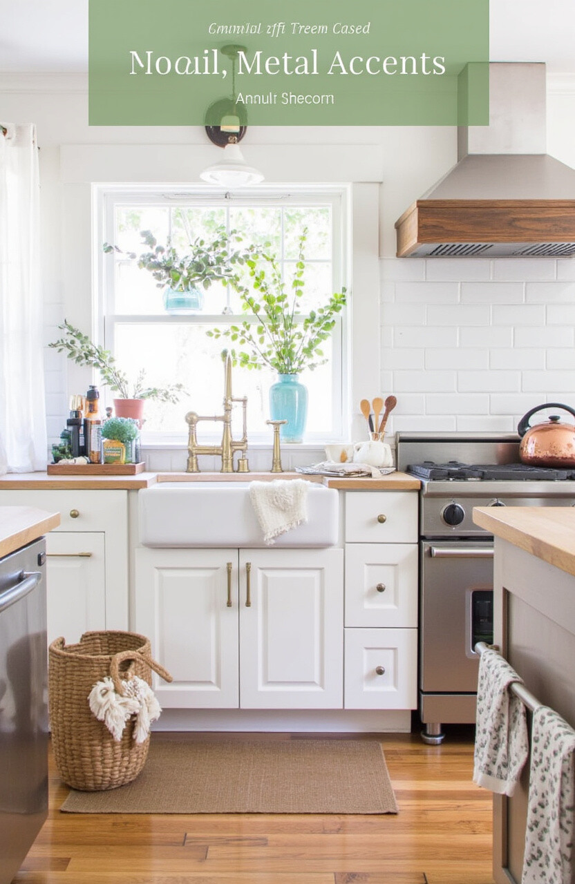Mixing metal accents in your kitchen adds a modern twist to rustic design. Think copper pots, stainless steel appliances, and brass fixtures all in one space.