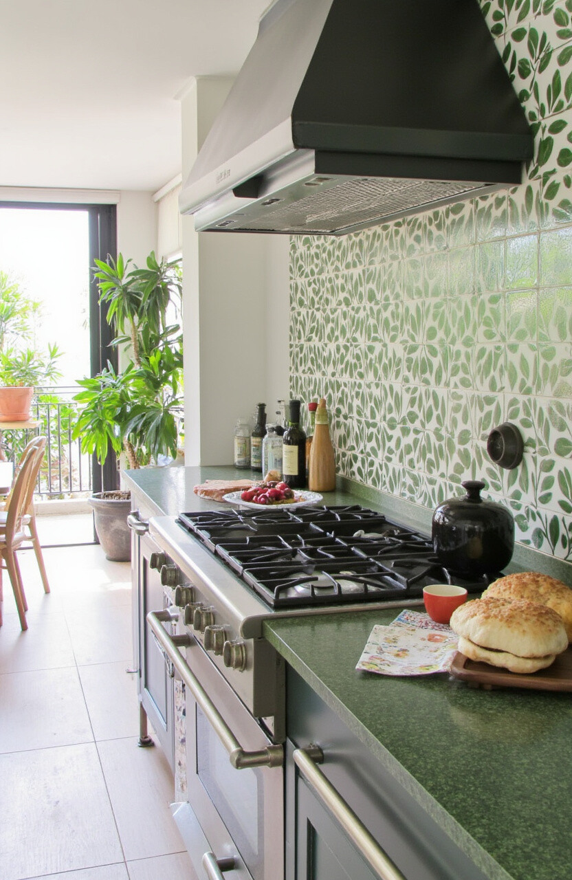A nature-inspired backsplash brings the outside in. Think of tiles with leaf patterns or shades of green and brown. It feels like cooking in a forest!