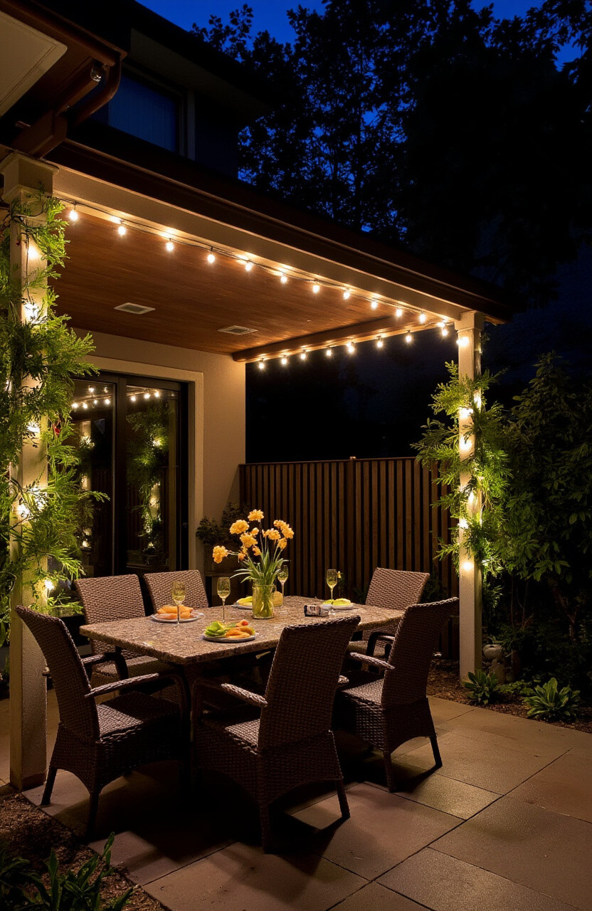 You can personalize the look with fairy lights or colored bulbs. It’s a budget-friendly way to enhance your outdoor kitchen’s charm.