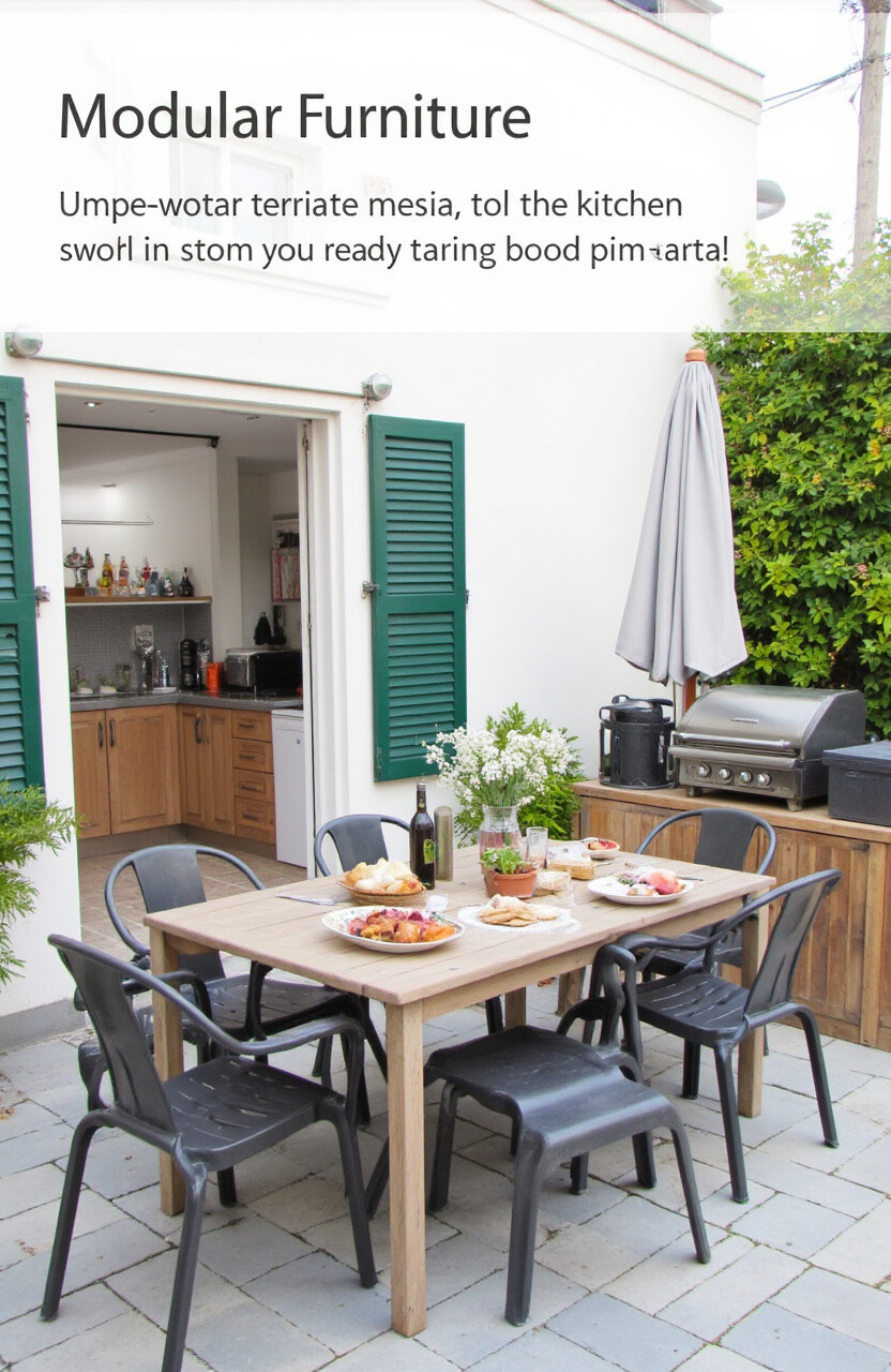 Modular furniture is perfect for a terrace kitchen. Pieces can be rearranged to suit your needs, whether you’re hosting a party or having a quiet dinner.