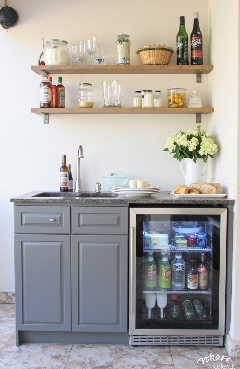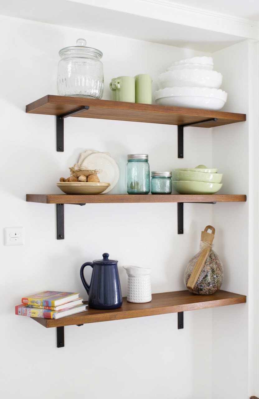 Not only does it look great, but it also makes everything easily accessible. You can grab what you need without rummaging through closed cabinets. Use sturdy wooden or metal shelves to hold all your essentials.