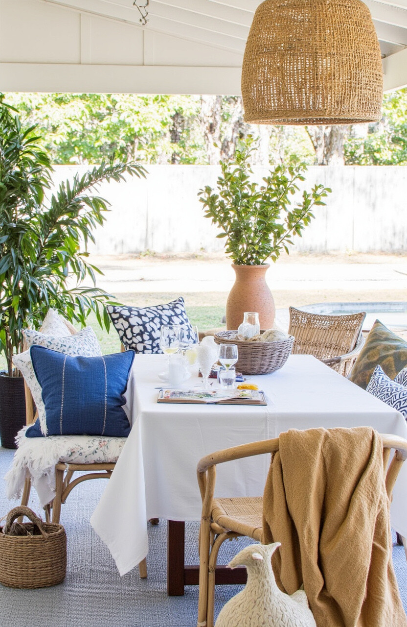 Using natural fiber textiles like cotton or jute for cushions, tablecloths, or curtains adds a soft touch to your outdoor kitchen.