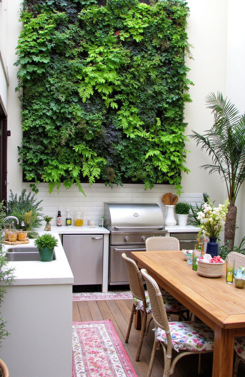 The soothing sound of water can make your outdoor kitchen feel like a retreat. Consider adding a small fountain or a birdbath.