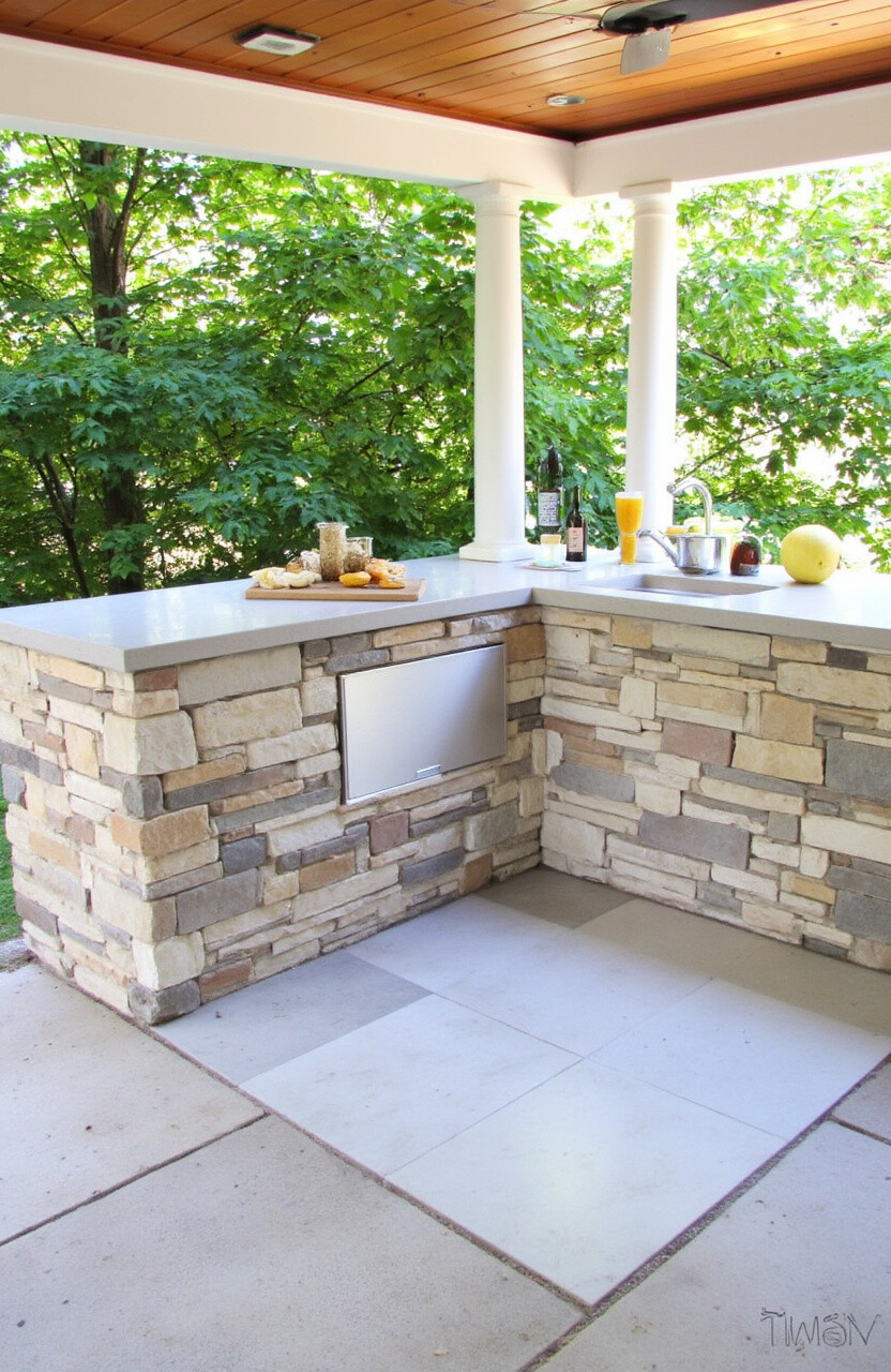 Bamboo is a trendy, eco-friendly choice that adds an exotic touch to outdoor kitchens. It’s lightweight and can be used for various accents.
