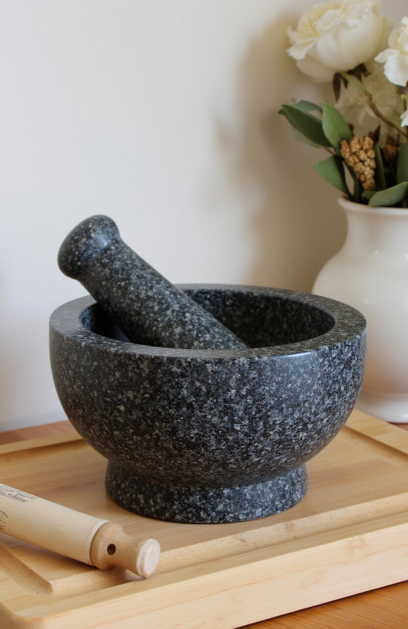 A granite mortar and pestle is like the timeless tool that never goes out of style. It’s perfect for those who love cooking and want to add a touch of authenticity to their kitchen. Granite is durable and provides excellent crushing power.