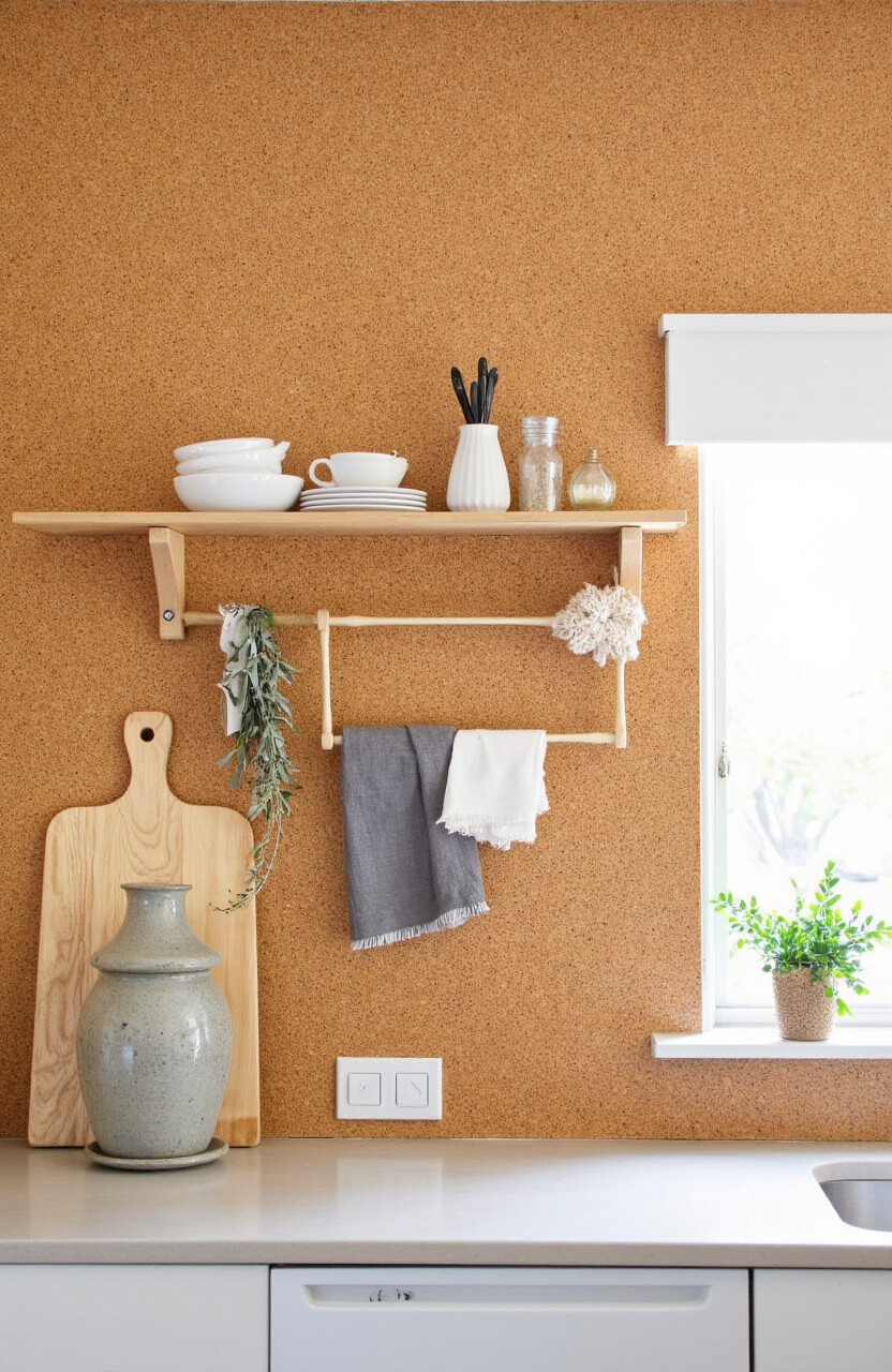 Cork walls are like the fun, quirky friend everyone loves. They’re soft, warm, and bring a sense of playfulness to your kitchen. Cork is also a renewable resource, making it an eco-friendly choice.