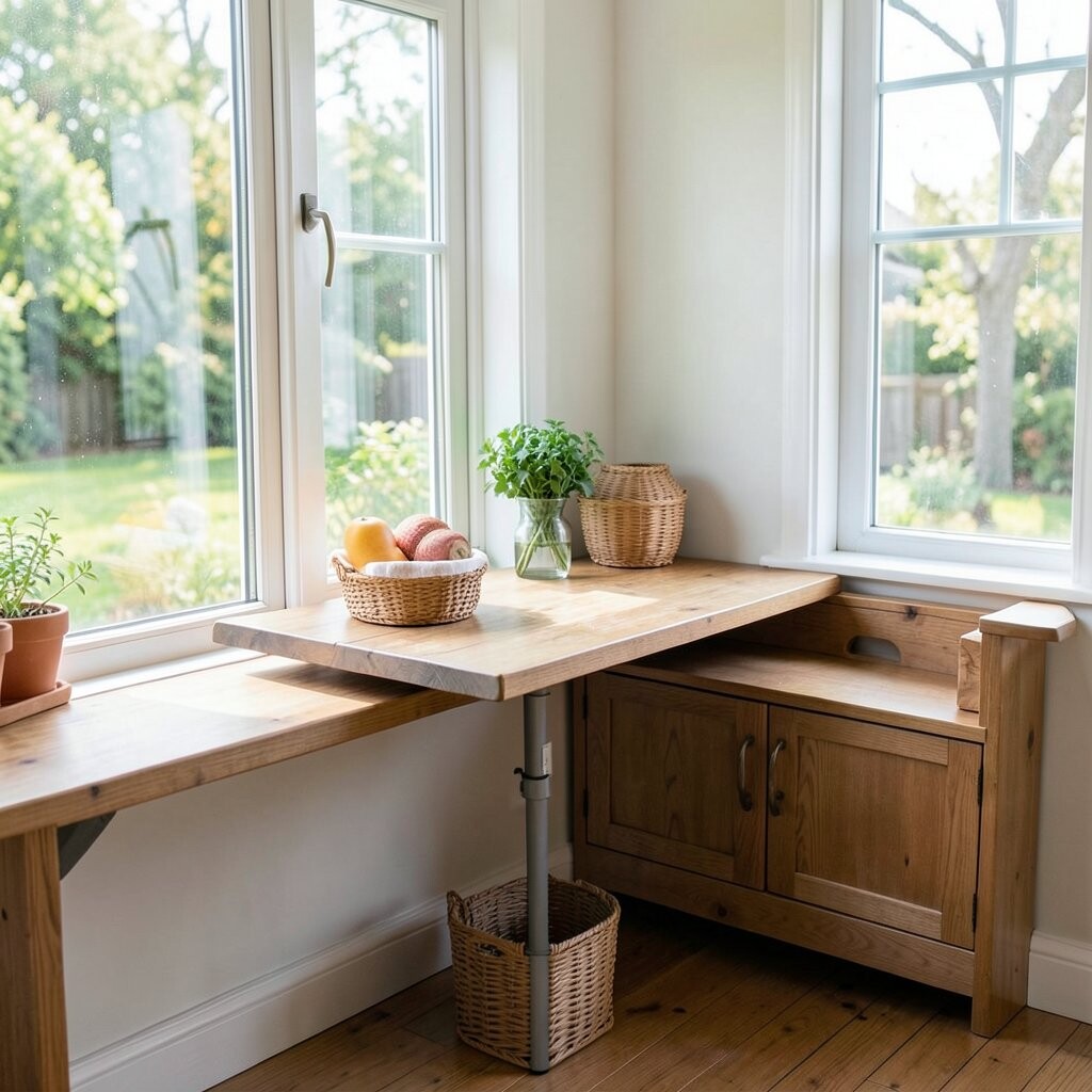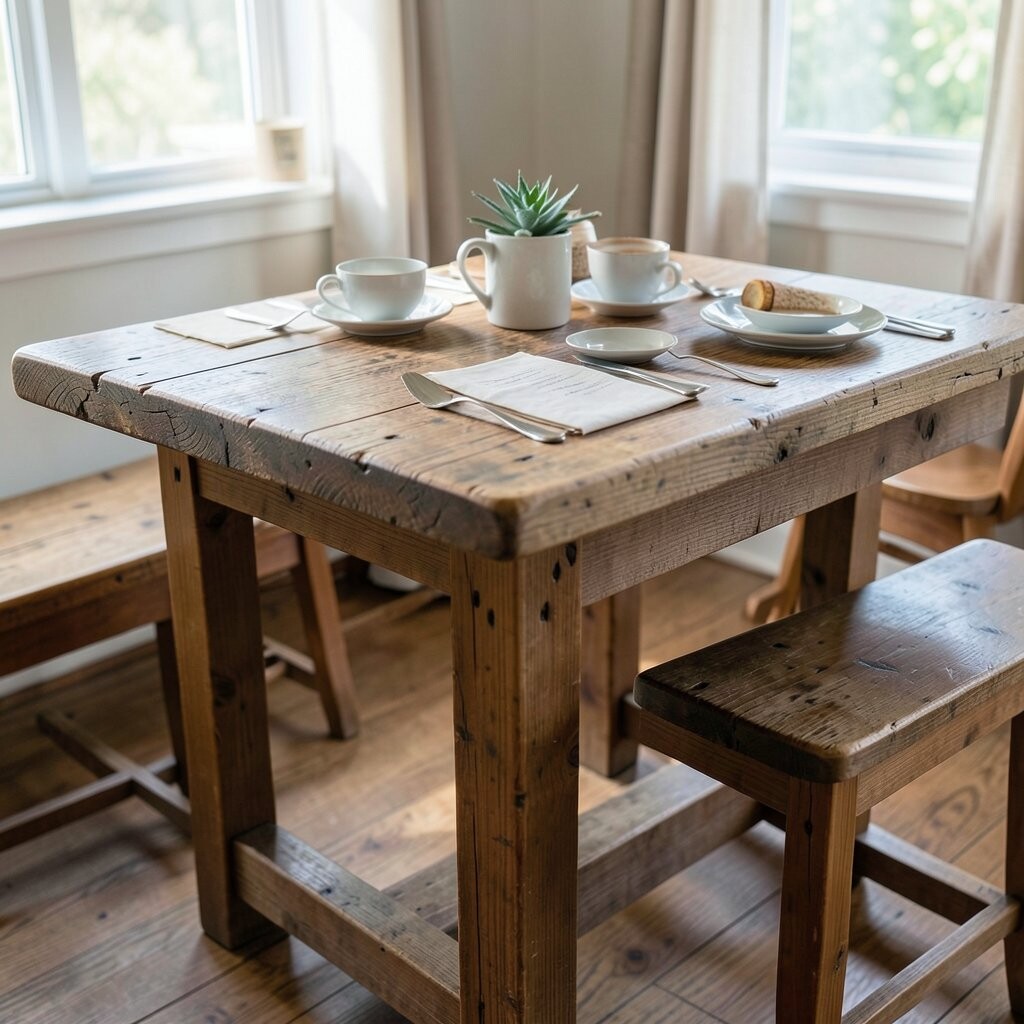 A rustic wooden table can be the centerpiece of your breakfast nook. The natural wood adds warmth and character, making your space feel grounded and welcoming.