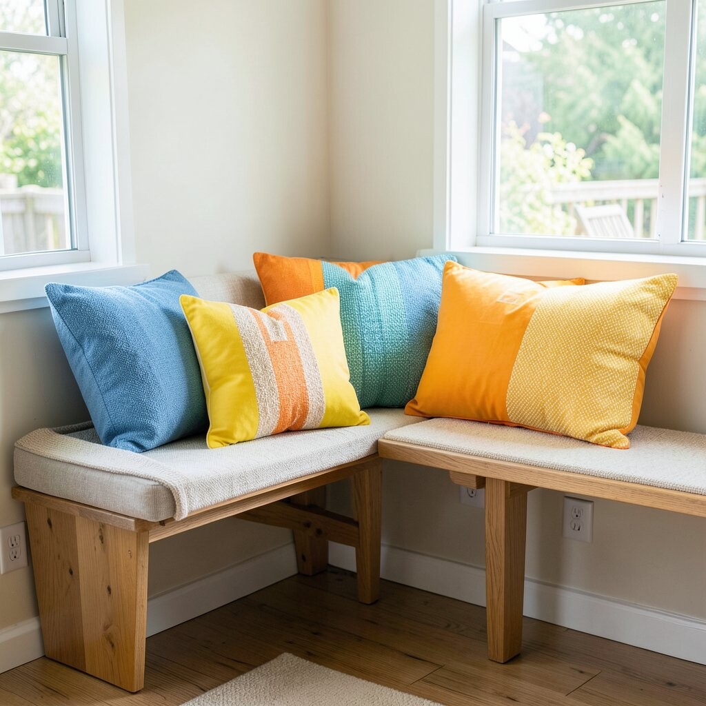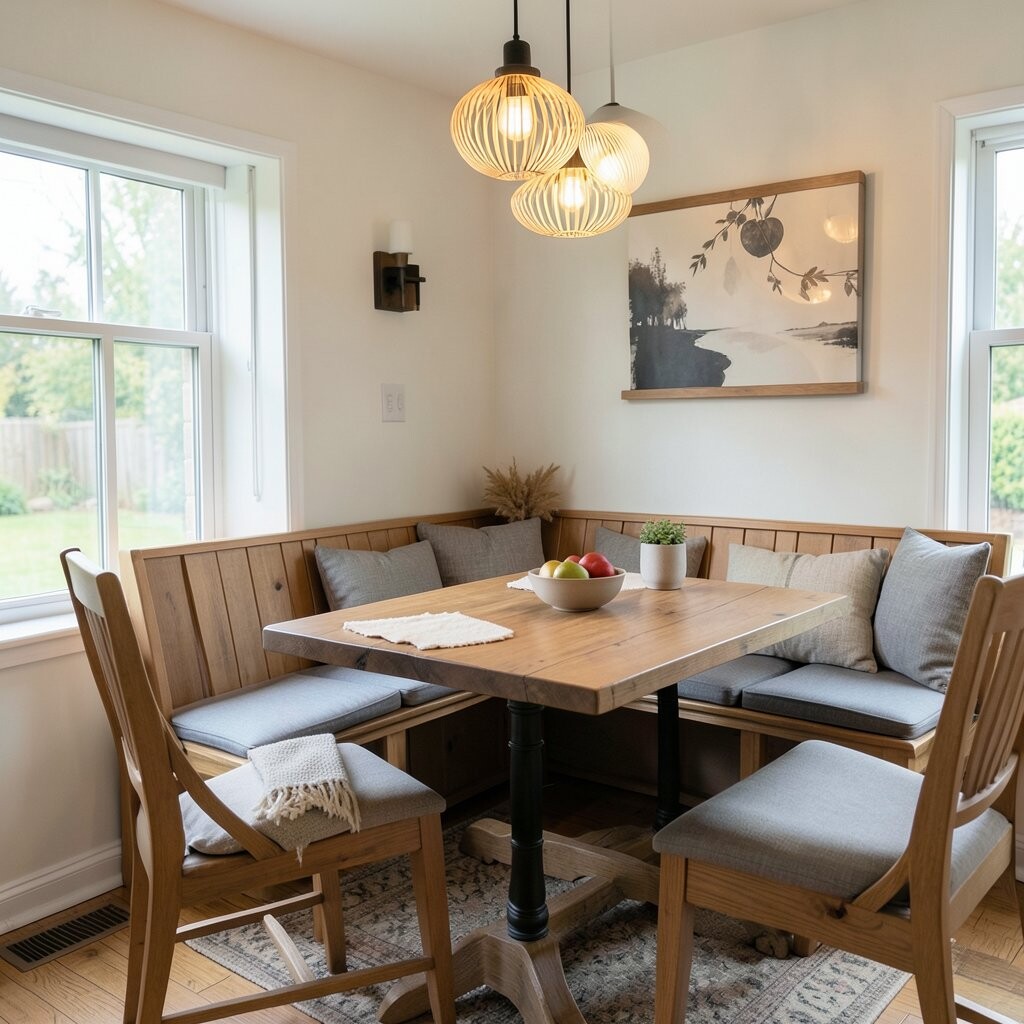 Bench seating can maximize space and create a casual, laid-back vibe. Add cushions for comfort and style. Built-in benches can even offer hidden storage for a clutter-free nook.