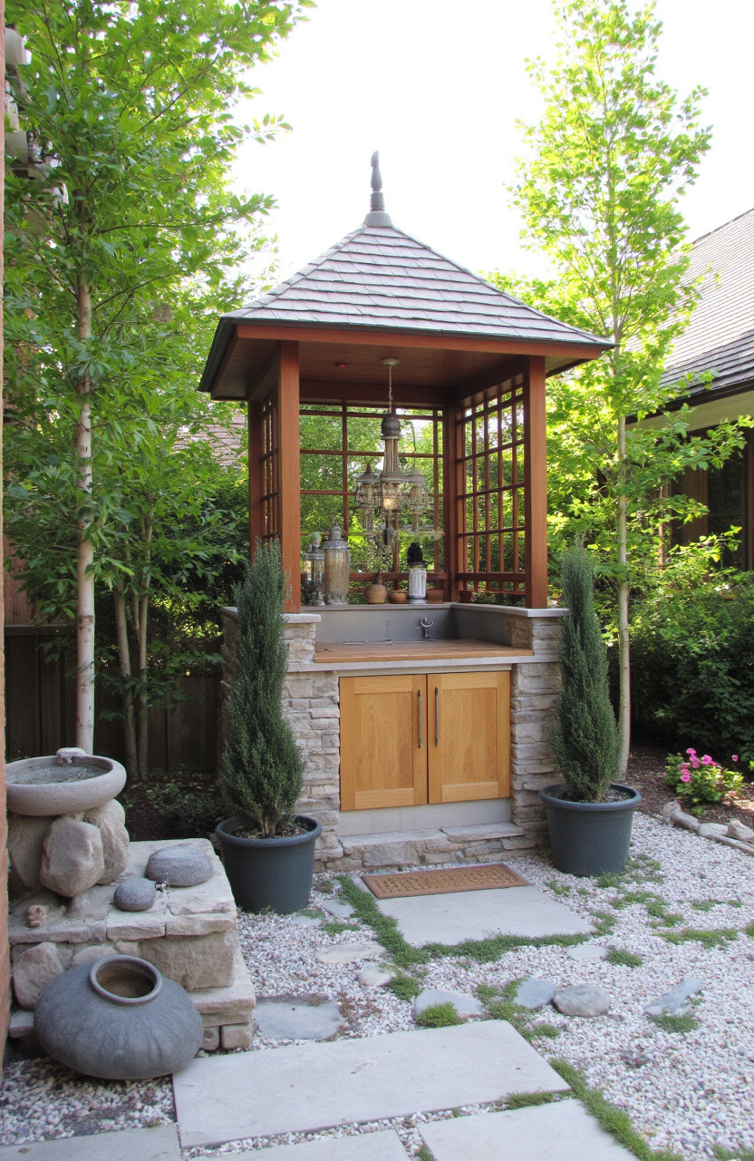 Create a tranquil oasis with an Asian-inspired patio kitchen. Use natural materials like bamboo and stone, and focus on clean, uncluttered lines. This style is perfect for those who seek peace and harmony in their cooking space.
