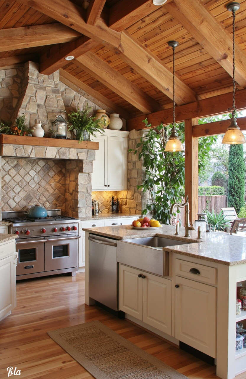Imagine a kitchen that combines the cozy feel of rustic design with the sleekness of modern elements. Use wood and stone to create that warm, inviting atmosphere while incorporating stainless steel appliances for a contemporary touch. It’s perfect for those who love the old-world charm but don’t want to sacrifice modern convenience.
