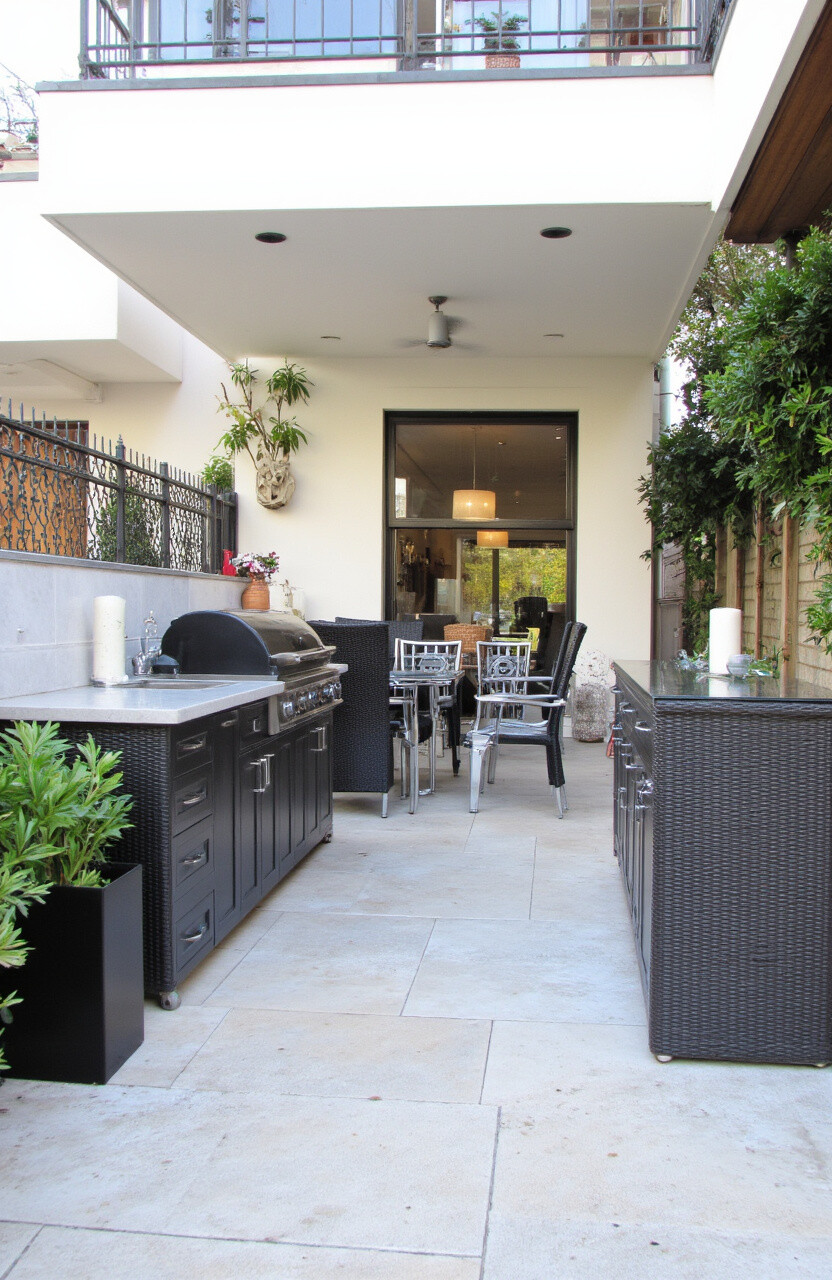 You can focus on quality over quantity, investing in a few key pieces like a marble countertop or a sleek grill. It might seem simple, but the elegance of this design is unmatched.