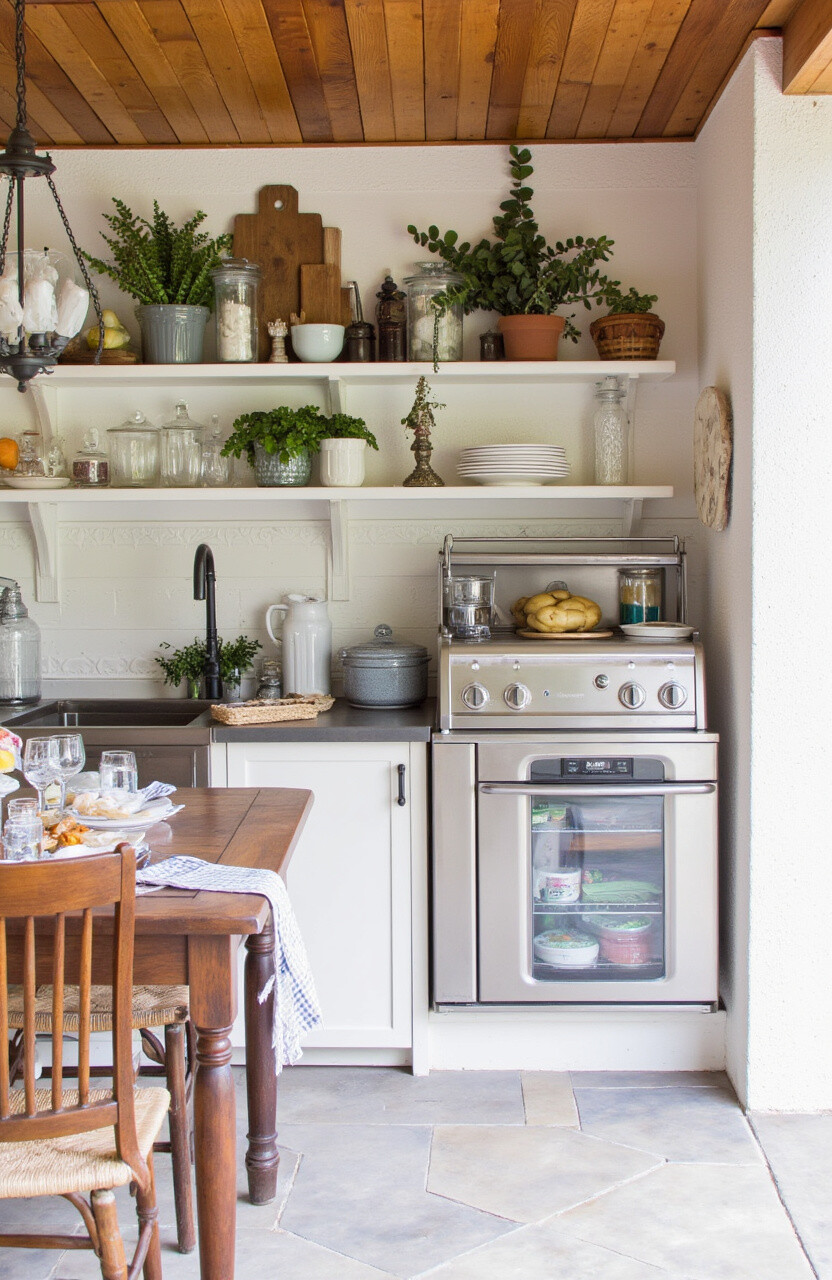 Search flea markets or thrift stores for unique pieces that add to the vintage feel. It’s a fun and often affordable way to design your patio kitchen.