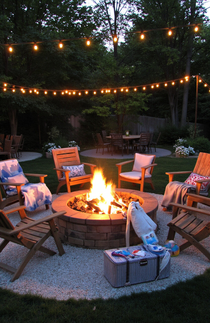 This setup is perfect for casual gatherings and brings a sense of warmth to your garden. It’s a budget-friendly option that can be achieved with thrifted and repurposed items. Embrace imperfections for a genuine, lived-in feel.
