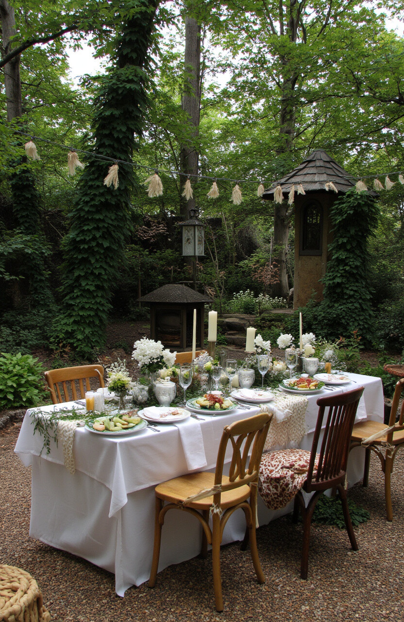 Embrace the beauty of the forest with a woodland-themed dining setup. Use natural materials like wood and stone, and incorporate greenery and fairy elements. Lanterns and candles add a touch of magic.