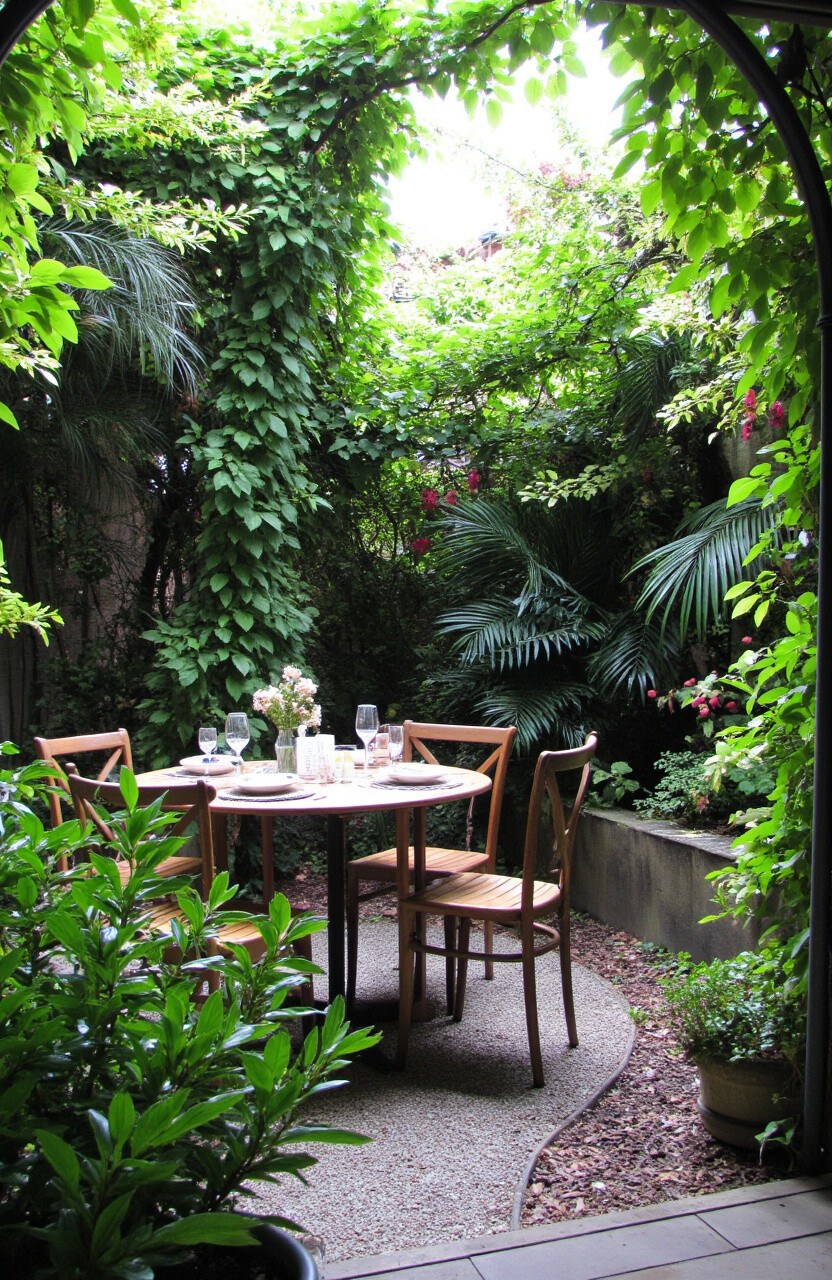 Find a secluded corner of your garden and turn it into a hidden dining gem. Use tall plants or trellises to create a sense of enclosure and privacy. Soft lighting and a small table complete the intimate setting.