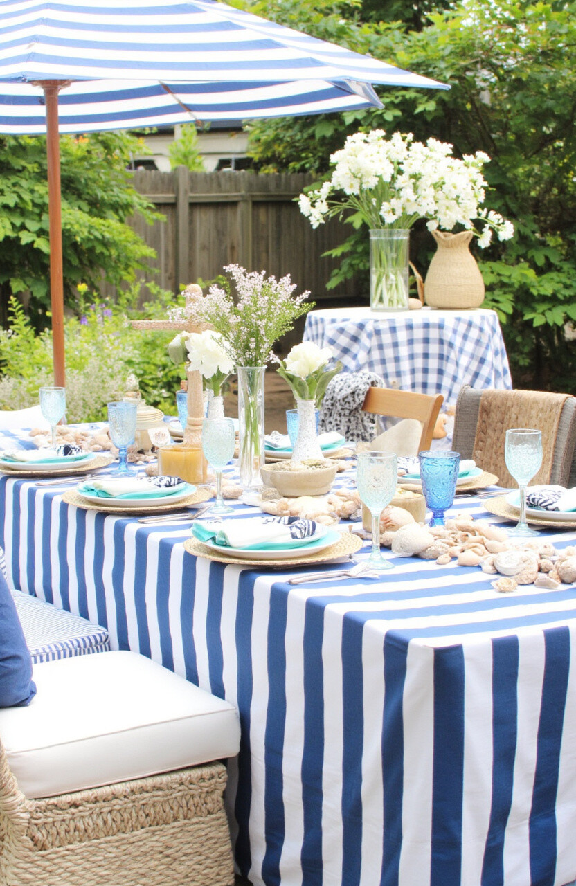 Channel the seaside with a nautical-themed dining area. Use navy and white stripes, anchors, and rope accents for a coastal feel. Driftwood and seashells make great centerpieces.