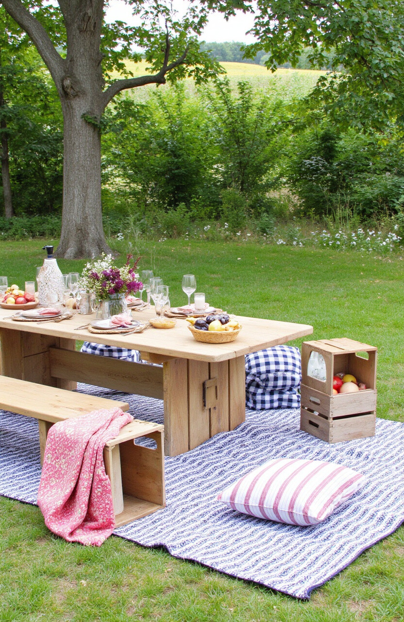 A picnic-style dining setup brings a laid-back yet charming vibe. Use a large, checkered blanket and scatter cushions for seating. Wooden crates can act as rustic tables, offering a unique twist to traditional dining.