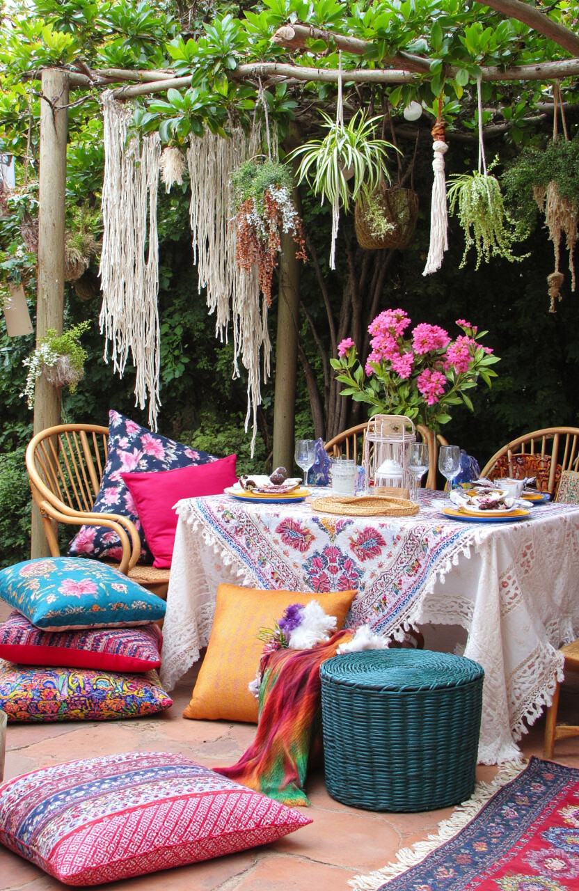 Embrace a carefree, bohemian style with colorful textiles and eclectic decor. Mix and match cushions and throws to create a vibrant and inviting atmosphere. Hanging plants and dreamcatchers add to the boho aesthetic.