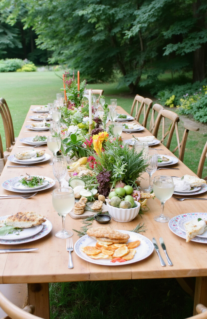 Create a dining experience that celebrates fresh, local produce. Use a long, wooden table with simple tableware to let the food shine. Decorate with seasonal flowers and herbs for a burst of color and fragrance.