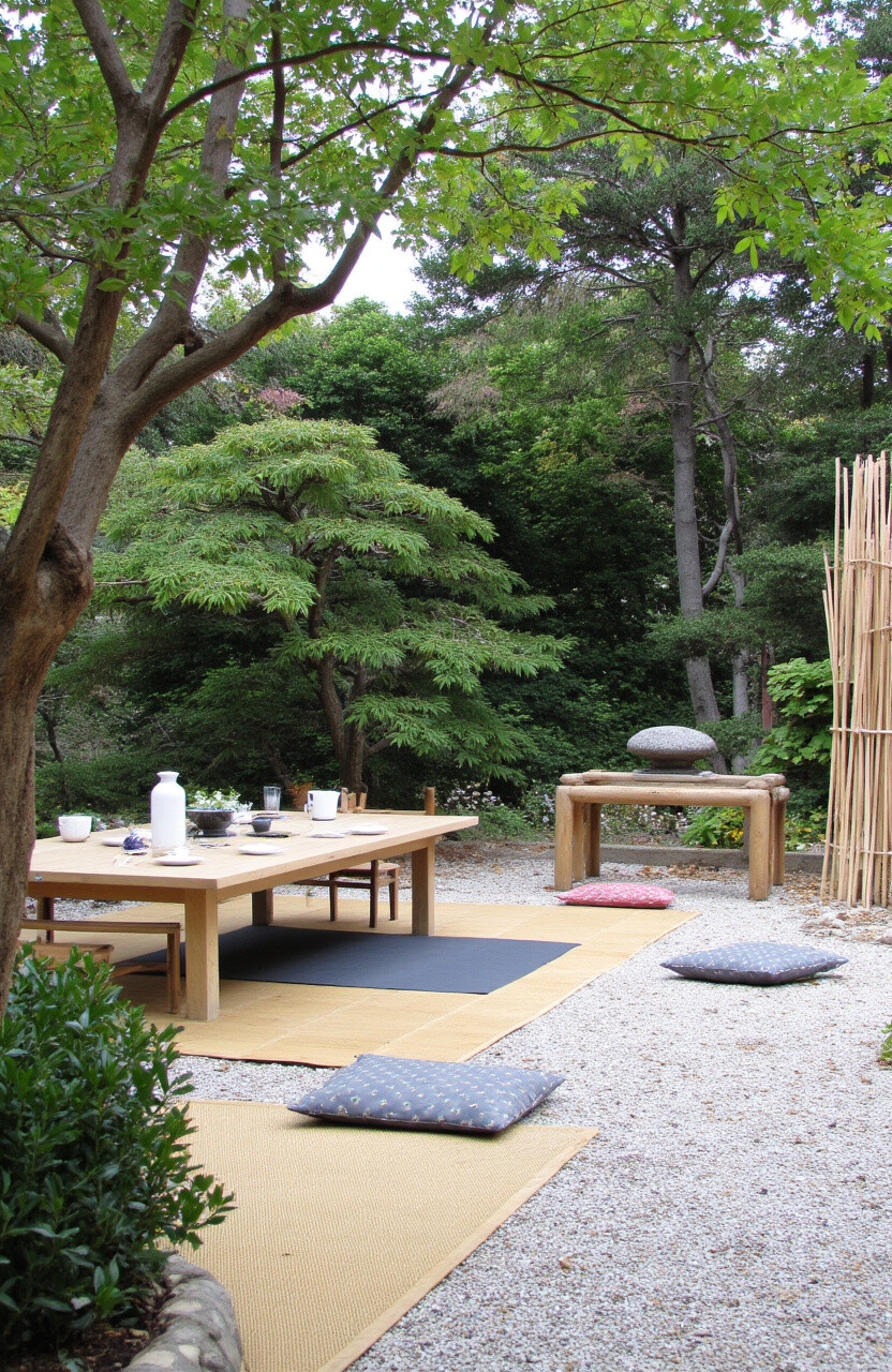 This idea is perfect for those who appreciate minimalist design and tranquility. It’s a cultural experience that brings a sense of peace to your garden. Keep decor simple and let the natural surroundings enhance the setting.