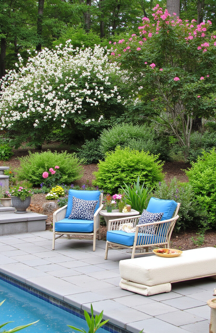 Create a garden oasis with blooming flowers, green plants, and cozy seating. Imagine a space surrounded by nature’s beauty.