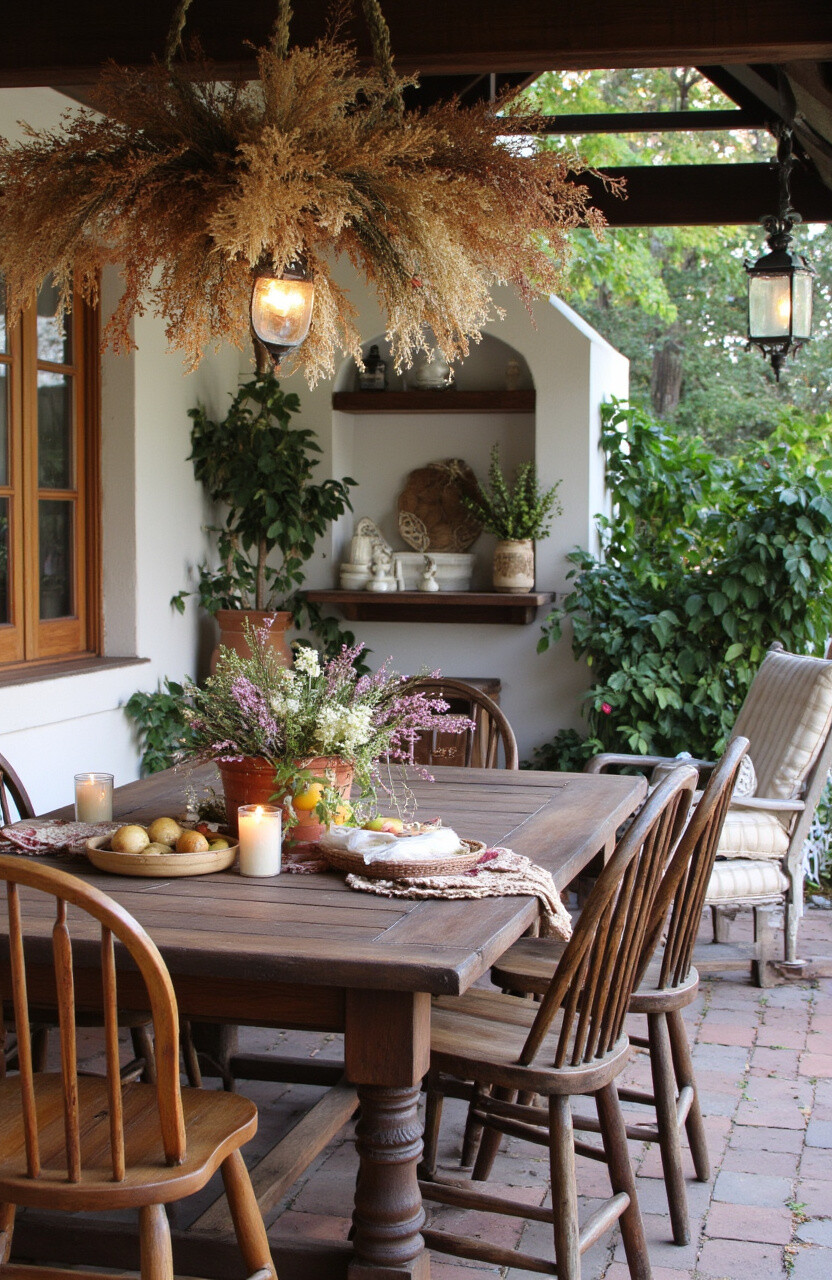 This style is unique because it combines the beauty of nature with functionality. Incorporate lanterns or mason jar lights for a cozy evening glow. The rough textures and natural elements give a sense of peace and homeliness.