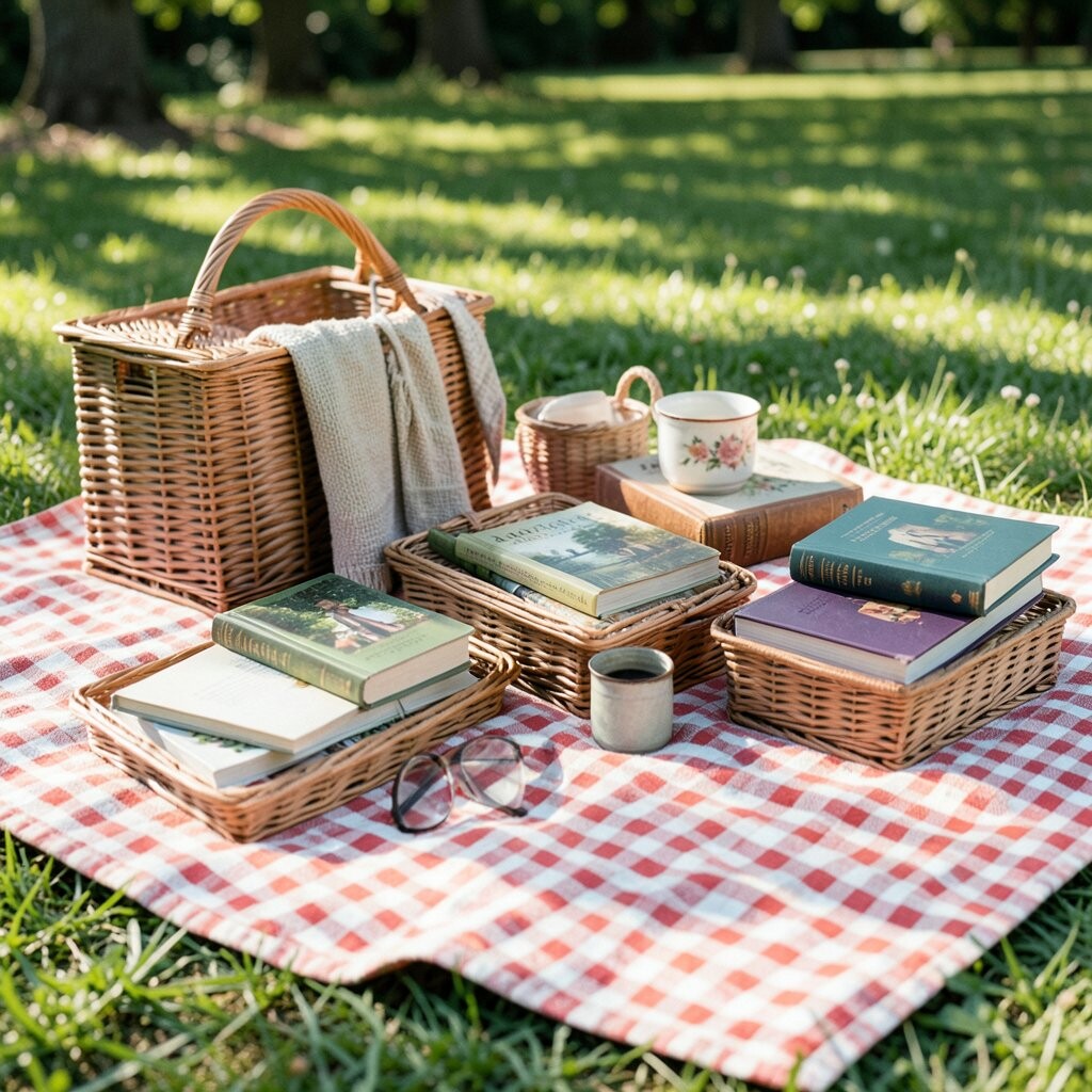 This picnic is made for readers who love quiet time and soft textures. Bring your favorite books, a fluffy blanket, and a basket with snacks that are easy to eat one-handed.