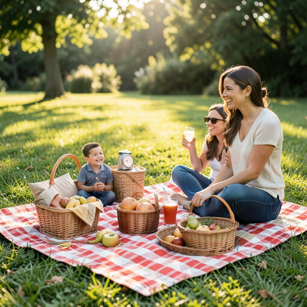 A local park can feel like your own little outdoor living room. Set up under a big tree with a soft blanket, a small table tray, and a basket full of snacks.