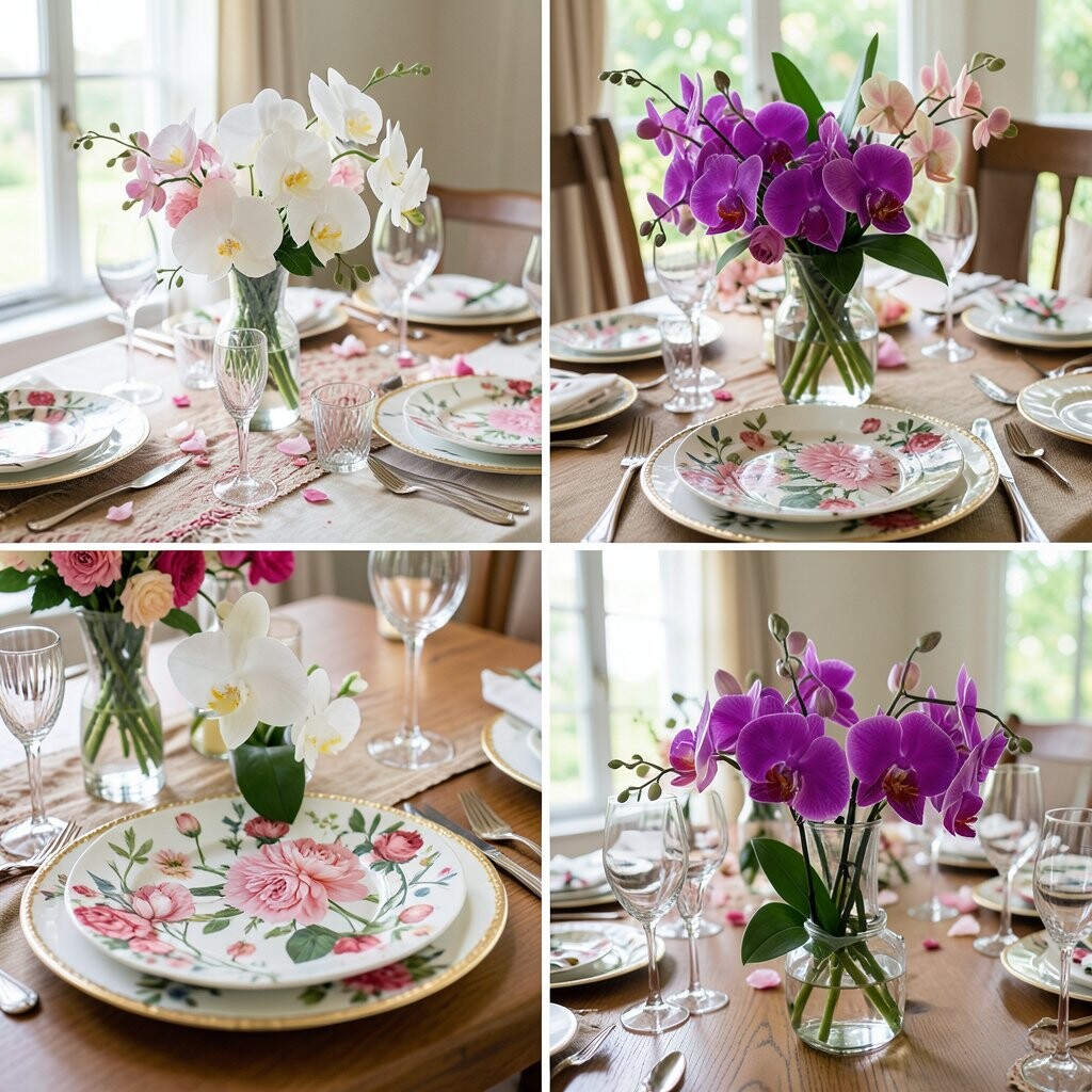 Floral plates featuring orchids can add an exotic touch to your party. Perfect for a sophisticated, international-themed event.