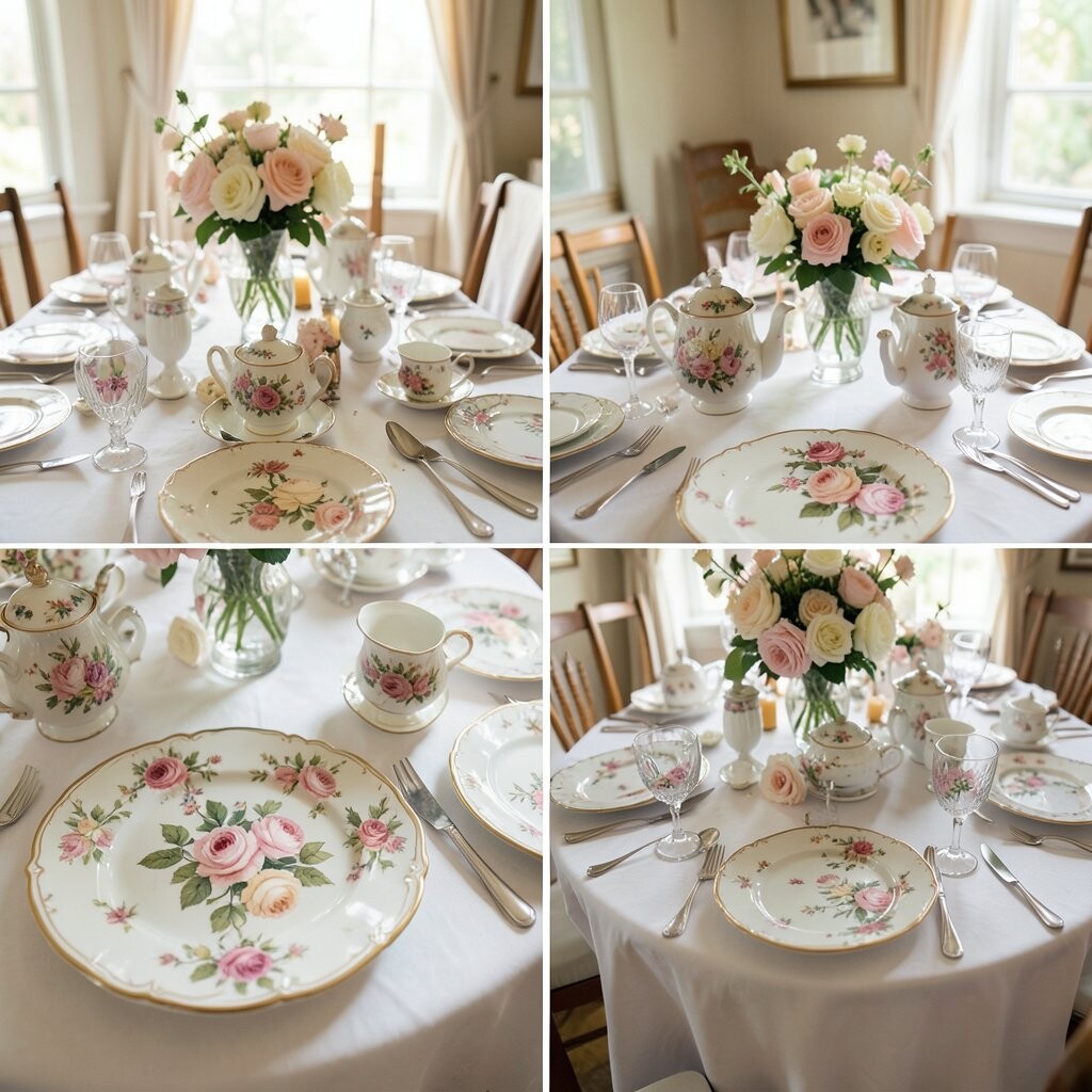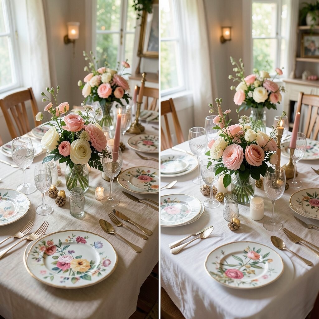 Use soft pink napkins and rose petals on the table for added romance. This setup is sure to evoke nostalgia and warmth among your guests.