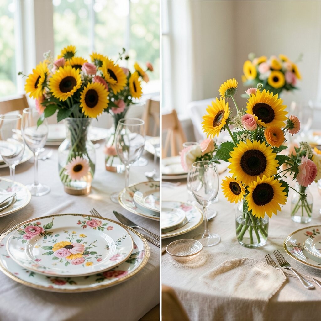 Use sunflower centerpieces and bright tablecloths to enhance the look. The vibrant yellow hues promise to lift spirits and brighten the day.