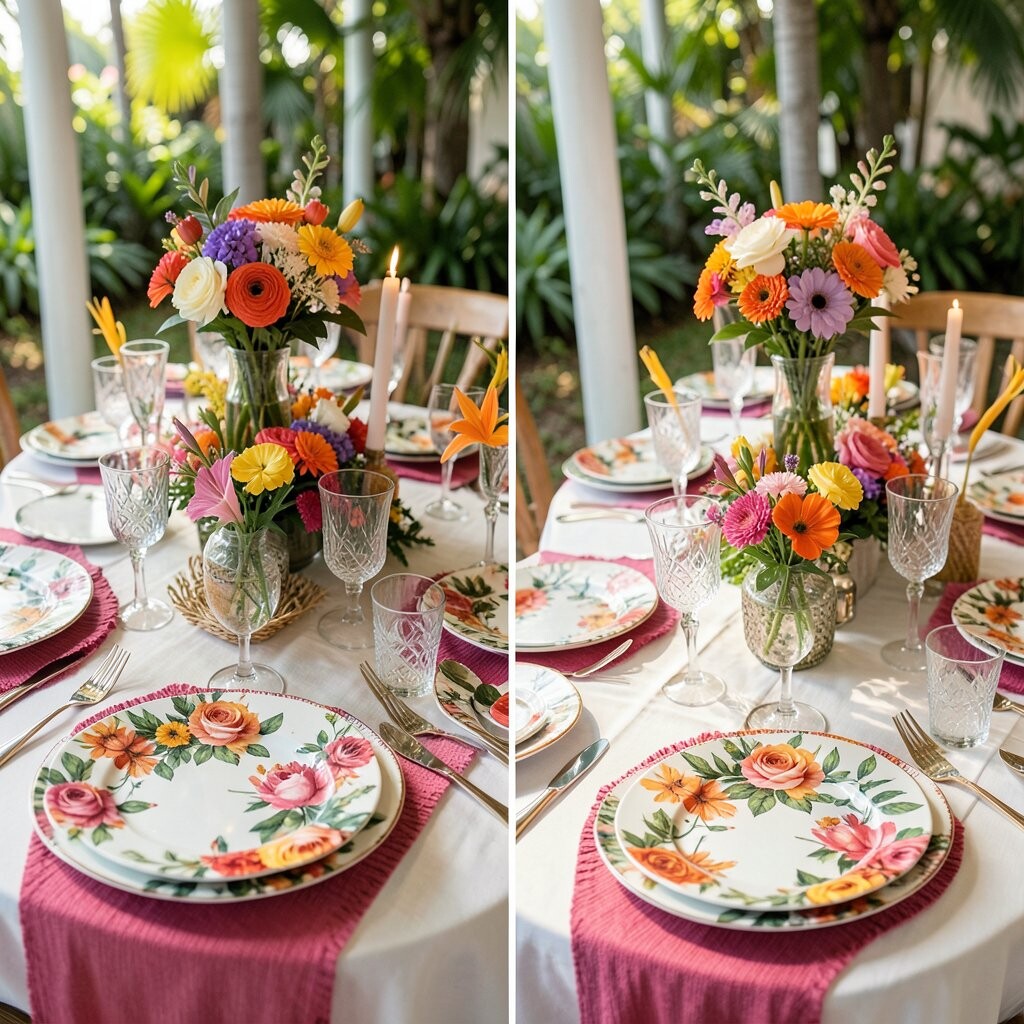 Make a statement with vibrant floral plates that feature bold designs. These plates are perfect for a lively, energetic party.