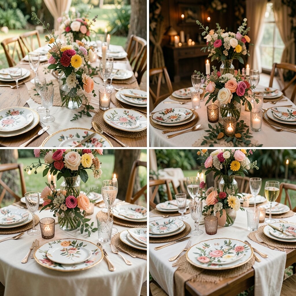 Create a laid-back, boho vibe with floral plates featuring earth tones and wildflower designs. These plates can be the centerpiece of a relaxed, free-spirited gathering.