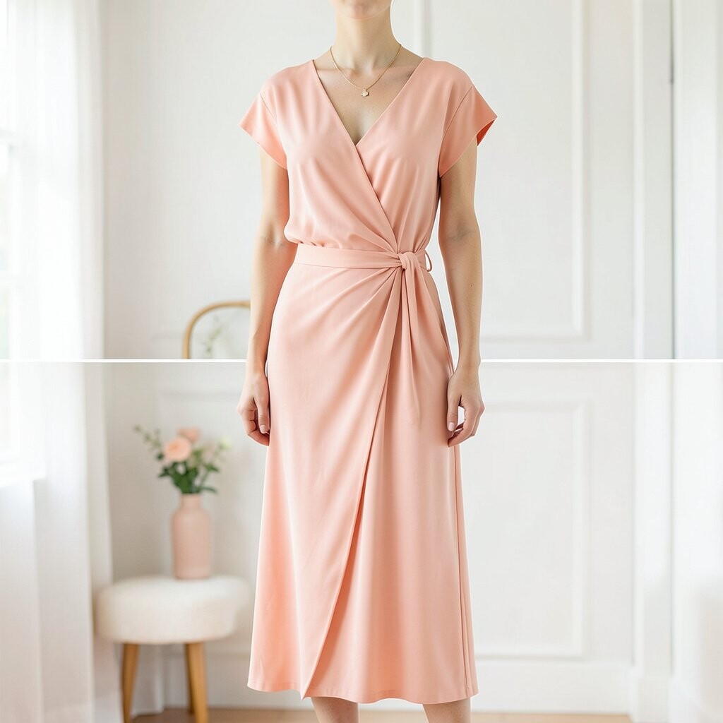 A light coral wrap dress is both romantic and flattering. It wraps around you like a gentle hug.