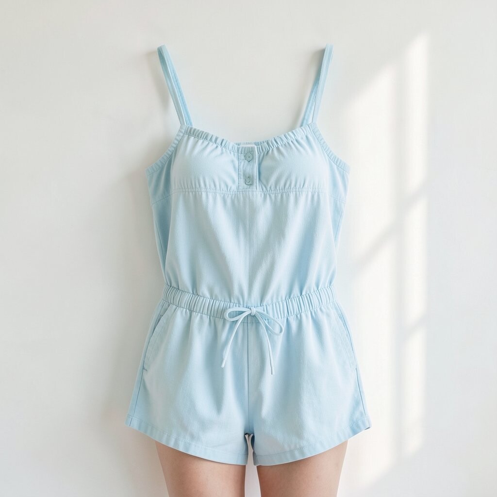 A sky blue romper is playful and fun. It’s comfortable and easy to wear.