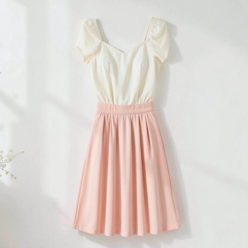 3. Peachy Pink Skirt and Cream Top