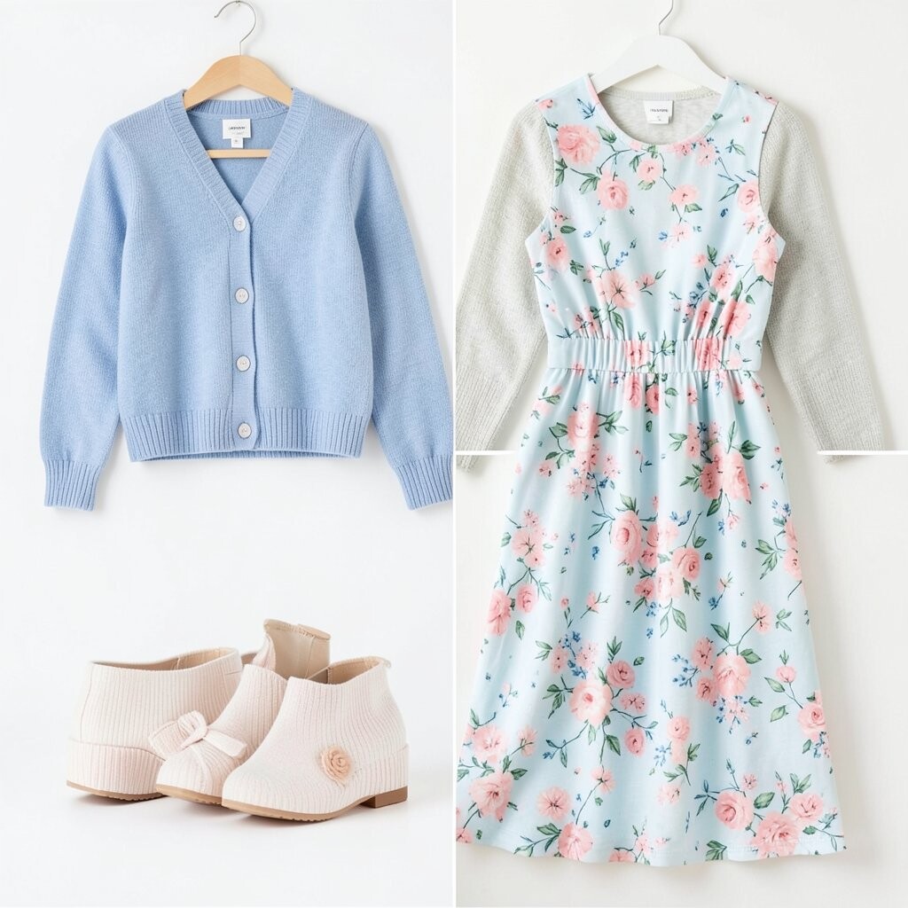 Look for floral patterns that incorporate other pastel colors for a cohesive look. Baby blue cardigans are a staple in pastel collections and are reasonably priced.