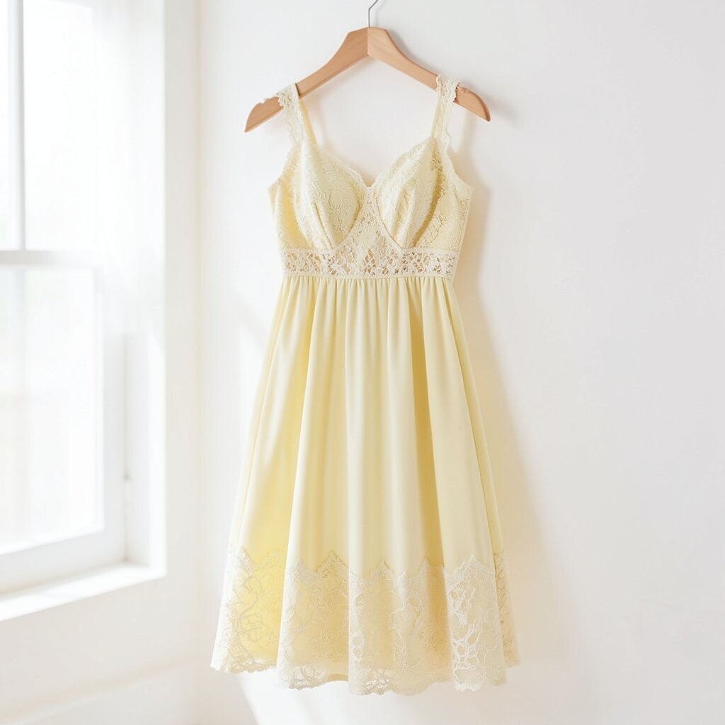 A pale yellow dress with lace details is both elegant and feminine. It’s like a soft ray of sunshine.