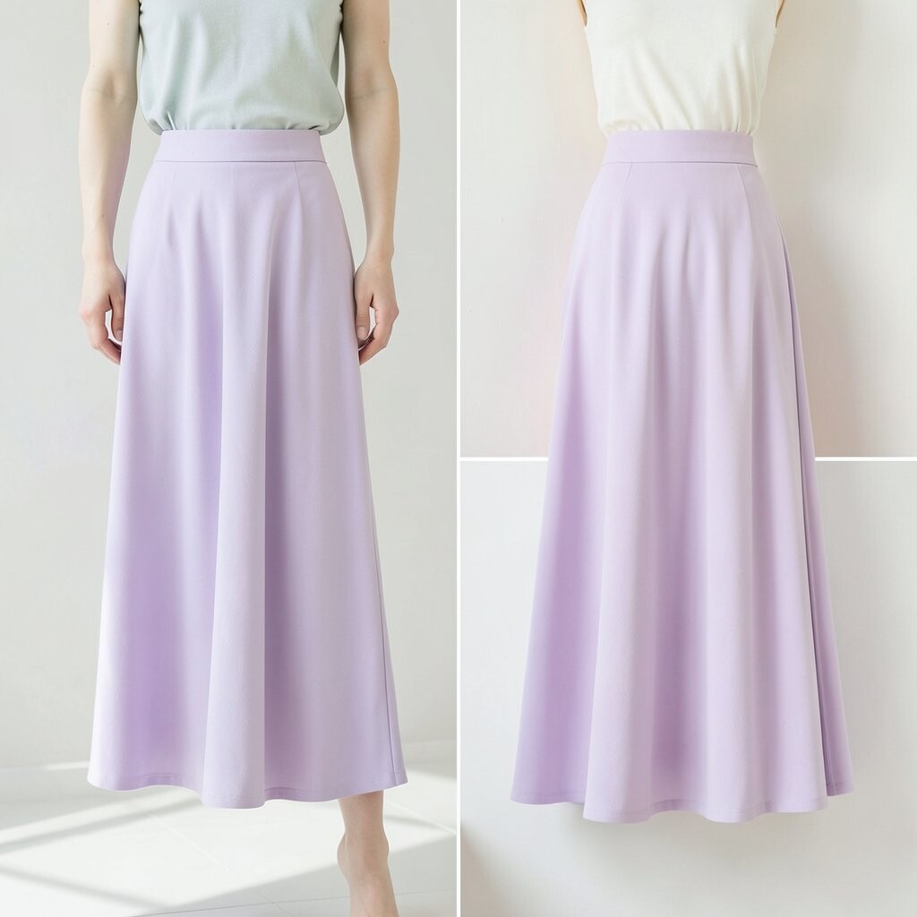 A soft lilac midi skirt is both feminine and trendy. It’s graceful and chic.